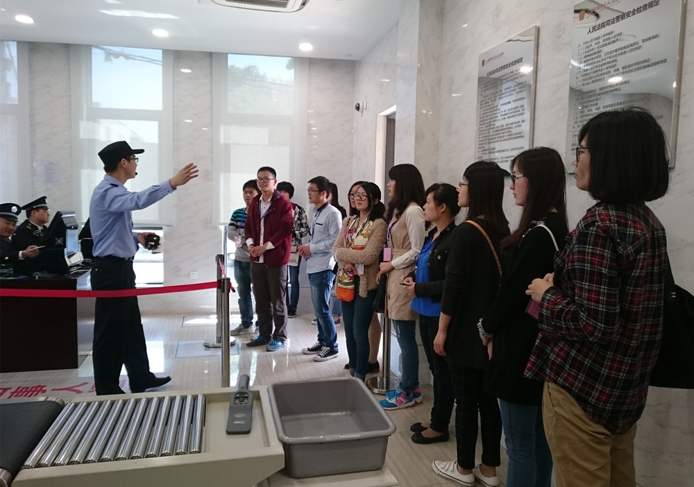 我台青年们在徐汇区法院团委书记王朝莹、团委副书记百乐的陪同下,先后参观了徐汇区法院的诉讼服务大厅、执行事务中心、信息集控中心、法制馆、院史馆。参观途中,百乐副书记向大家详细介绍了我国法院系统的分级分类方式和民事、刑事案件不同的审判流程,加深了大家对基层法院工作的认识。通过讲解,大家深刻体会到法律的公正与威严,进一步提升了知法、守法、用法的意识与观念。