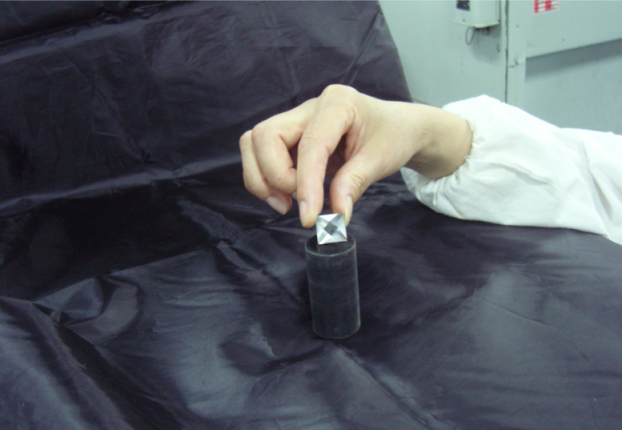 实验室现有定心研磨机、透镜磨抛机等一批种类齐全的光学冷加工设备,可以承担各种小口径光学元件的全流程精密加工业务,如球面镜、平面镜、直角棱镜、四棱锥镜、各种透镜、高精度球面样板以及异形镜。图1为加工车间一角。图2是加工完成的四棱锥镜(Pyramid)。