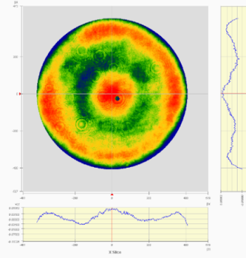 实验室目前拥有800毫米口径离轴平行光管、600毫米平面检验镜、900毫米平面检验镜、4D Shift动态干涉仪、ZYGO干涉仪、Fisba干涉仪、S-H波前传感器、高精度测角仪、高精度球径仪以及Nikon测量显微镜等一批高精密光学测量仪器,可以承担各种平面镜、四棱锥镜透镜、球面反射镜、非球面反射镜等光学元件和望远镜光学系统的面形检测。图3为检测出的一块球面反射镜面形。
