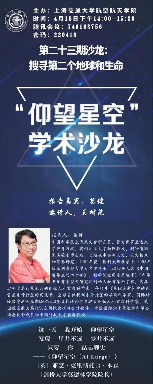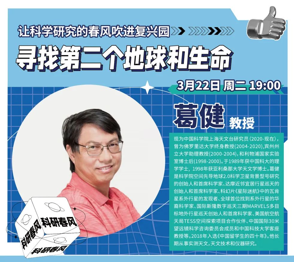 “地球2.0”项目的负责人葛健教授在疫情期间也积极参加科普讲座等活动,分享科研心路历程,鼓励年轻学生心怀梦想,努力追寻。