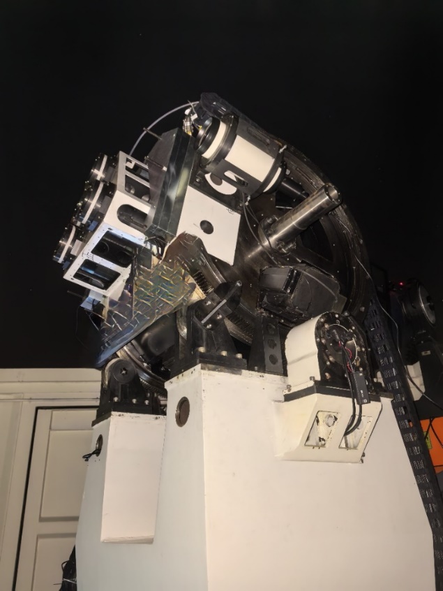 该望远镜原型机采用了Y-4阵列构型的创新设计方案,相较于国外传统的三孔径三角形阵列,Y-4阵列的基线从3条增加到6条,显著提升了空间频域的覆盖范围。每个子孔径的直径为100毫米,中心臂长为164.5毫米,其空间分辨率相当于单口径280毫米的望远镜。独特的C型机架设计提高了机械结构的刚度确保了共相控制的稳定性及可靠性。