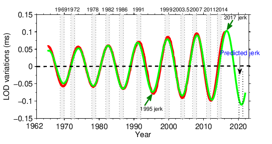 1. Duan, P. S. & Huang, C. L.,(2020). Intradecadal variations in length of day and their