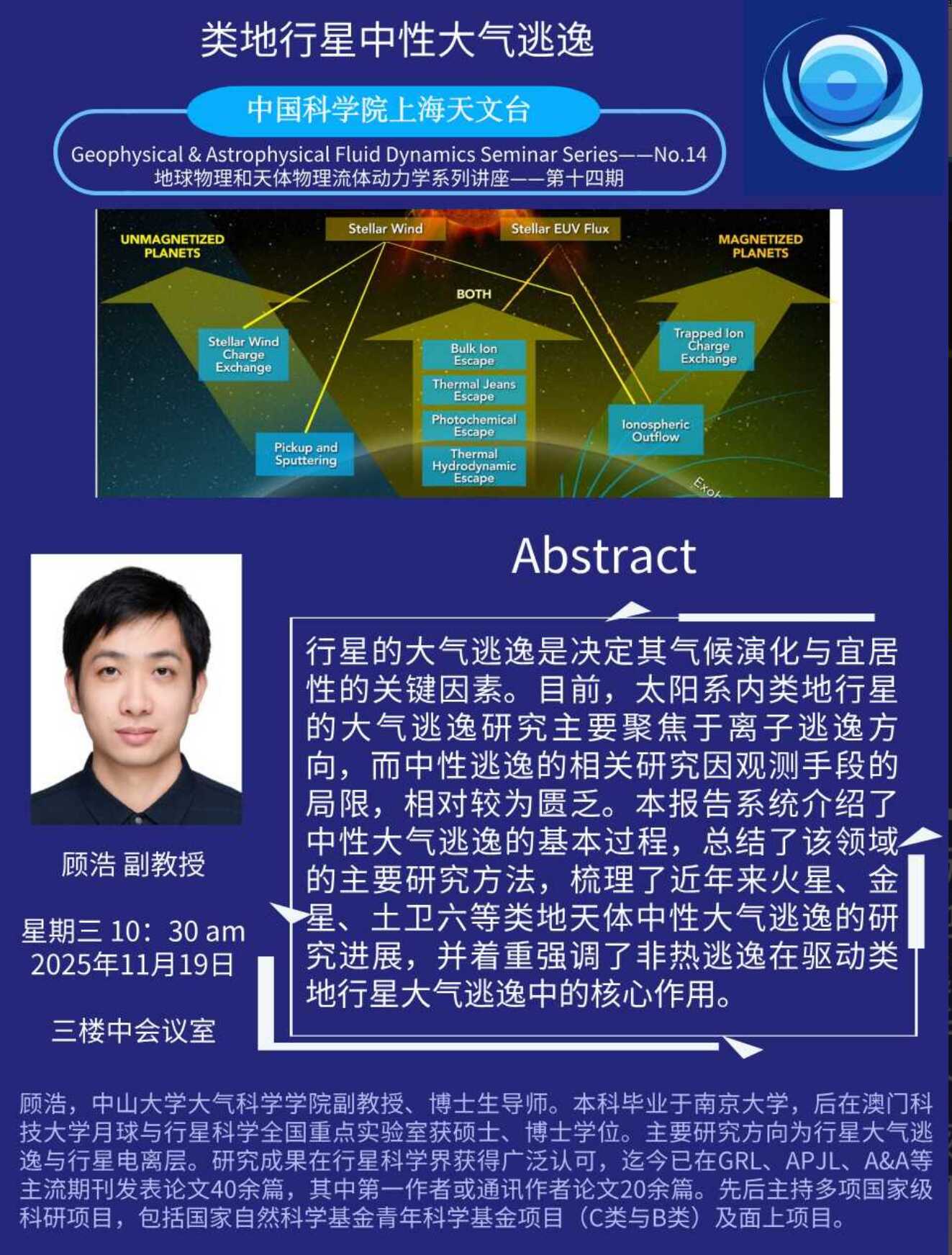 行星的大气逃逸是决定其气候演化与宜居性的关键因素。目前,太阳系内类地行星的大气逃逸研究主要聚焦于离子逃逸方向,而中性逃逸的相关研究因观测手段的局限,相对较为匮乏。本报告系统介绍了中性大气逃逸的基本过程,总结了该领域的主要研究方法,梳理了近年来火星、金星、土卫六等类地天体中性大气逃逸的研究进展,并着重强调了非热逃逸在驱动类地行星大气逃逸中的核心作用。