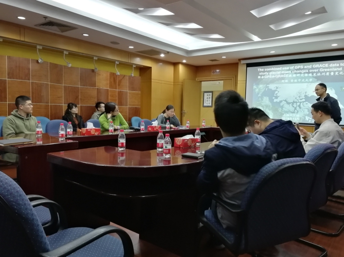 报告主要包括两方面的内容。刘琳博士首先介绍了卫星遥感资料给出的格陵兰冰川覆盖在近十余年的变化特征,指出其在西部和东南部存在显著减少,并存在明显的年际变化,在2012年表现出急剧下降,并在2013年存在显著回升。随后刘琳博士给出了利用GRACE卫星重力得到的格陵兰冰川质量变化,并结合格陵兰岛GPS测站的地表形变数据以及地球负荷理论对冰川质量变化进行了验证分析和物理解释,证实其变化特征与卫星遥感观测结果在季节性变化及年际尺度上是一致的。此外,刘琳博士还就格陵兰岛冰川均衡调整效应对地表形变解释的影响进行了说明,同时指出GPS观测与GRACE卫星重力资料所反映的信号空间分辨率不一致的有效处理仍将是相关研究领域亟待解决的关键问题。