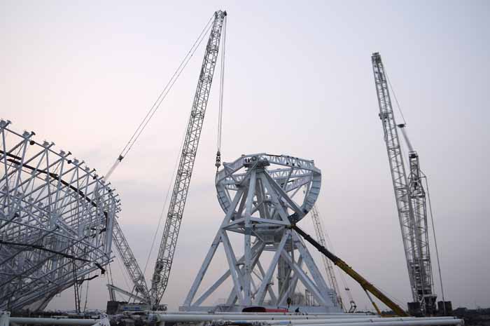 天线主反射面背架的吊装计划在4月中旬进行,届时65米天线将初步展现出其壮观的雄姿。 |