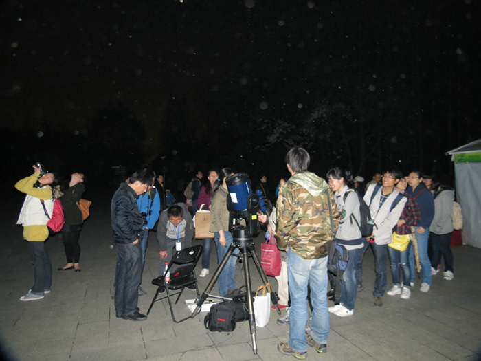 通过微博报名的40位市民来到现场参与活动,活动内容包括:春季星空观测、寻找夜精灵、《认识光污染》主题讲座,活动旨在呼吁公众关注身边环境的变化,重视节能和环保。