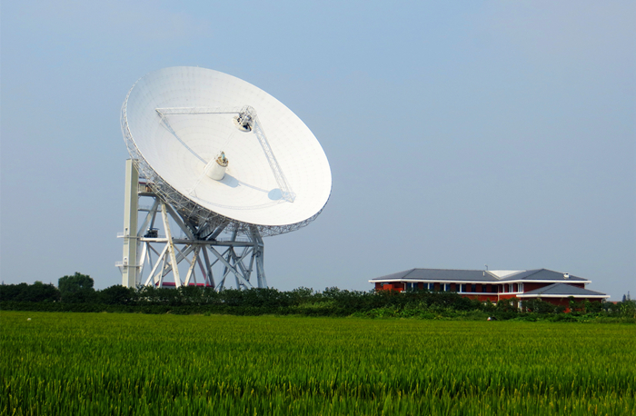 九江公路1365号,佘山脚下一个不起眼的门牌号。上海65米口径全方位可动的天马望远镜,在一片秋意渐浓的庄稼地中,静静矗立着。