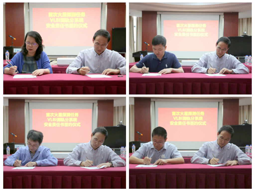 会前还举行了火星任务后勤安全保障责任书签约仪式。侯金良代表后勤安全保障工作领导小组分别与天马站、VLBI运行与指挥中心、综保处、信息计算中心签订了安全责任书。