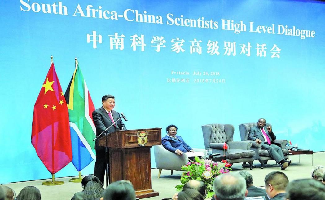 7月24日,中国-南非科学家高级别对话会在南非首都比勒陀利亚举行,习近平主席和拉马福萨总统共同出席了中南科学家高级别对话会开幕式。本次高级别对话系中南两国科技部为配合国家主席习近平对南非进行国事访问并庆祝中南建交20周年而组织召开的科技创新合作研讨会。来自中南两国科技界、产业界的科学家和企业家共200余人参加了对话会。习近平主席和南非总统拉马福萨一道出席了会议开幕式并致辞。