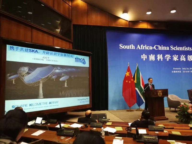 中南双方各五位科学家和企业家代表不同的学科领域和研发方向,分别就合作的成果、现状和潜力等发表了演讲。武向平院士代表中方第一个发言,题为“携手共建SKA,开辟认识宇宙新纪元”。 武向平院士指出: