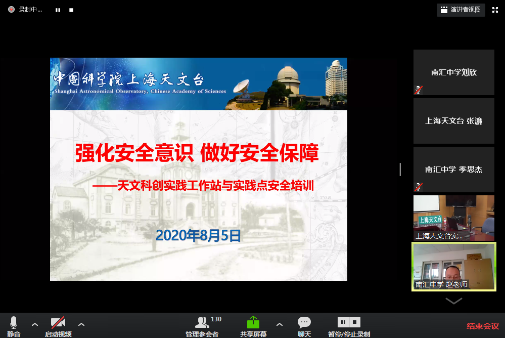 工作站继续邀请了在实践点之一——南汇中学从事一线天文教育的赵一斌老师给学生讲了一堂安全培训课,从出行到实践课程的开展,从生理安全到心理安全,赵老师介绍到各类注意事项,并结合疫情防控,用事例进行说明。