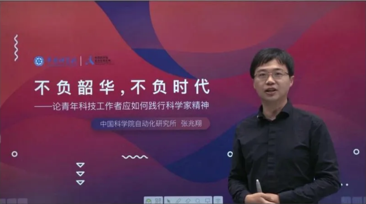一、来自中国科学院自动化研究所的张兆翔研究员结合亲身经历,讲述青年科技工作者应如何在实际工作中弘扬和践行科学家精神。比如他童年时期的理想,少年时期逐梦科学的求学之路,以及青年时期在领路人带领下不断求索科技创新的使命与担当。最后呼吁青年人感恩国家、报效祖国,志存高远、追求卓越,踏实积累,坚守钻研。
