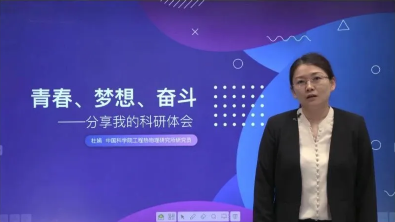 二、来自中国科学院工程热物理研究所的杜娟研究员从青春、梦想、奋斗三个角度讲述了她的科研体会,让广大青年学子无悔青春,树立爱国情怀和远大理想,并讲述了学生阶段如何做好科研的五个关键点。最后鼓励莘莘学子把握第四次科技革命的新机遇,在今后的岗位上勤勤恳恳、踏实努力,最终为社会贡献力量,实现自我价值。