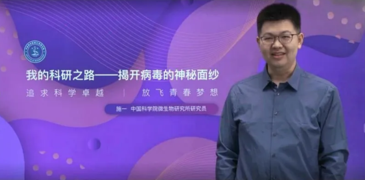 五、 来自中国科学院微生物研究所的施一研究员讲述了自己作为国内成长的青年科学家如何逐梦科学,选择坚守的经历。并列举科学大家感人事迹,鼓励青年学子做科研应面向国家战略需求,有义务有担当,为祖国和人民做出贡献。
