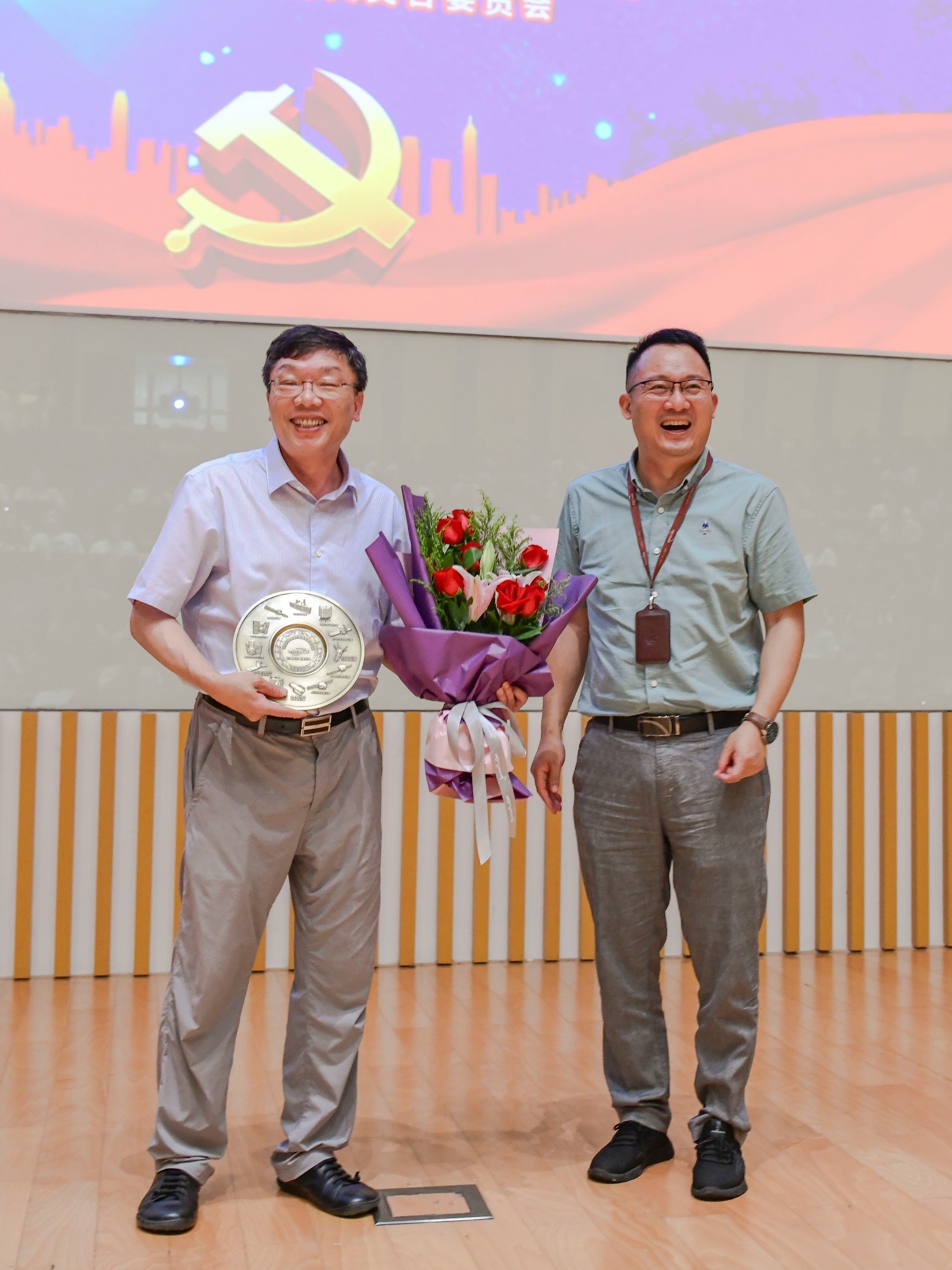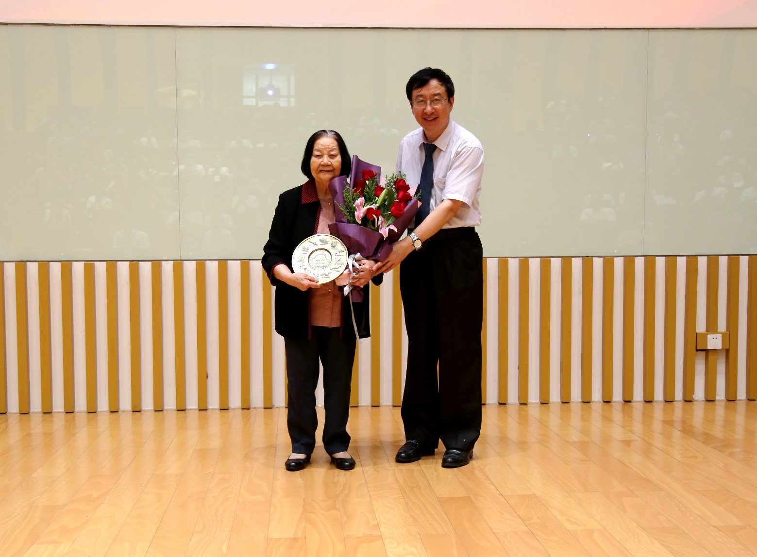 上海天文台副台长袁峰为熊少林研究员赠送鲜花