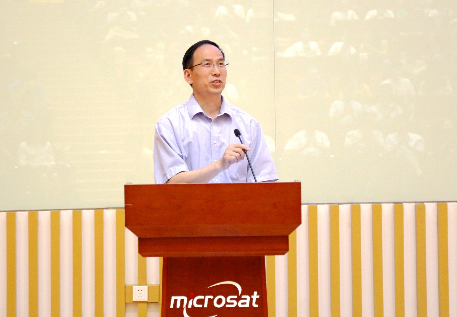微小卫星创新研究院党委副书记、纪委书记周四根主持报告会