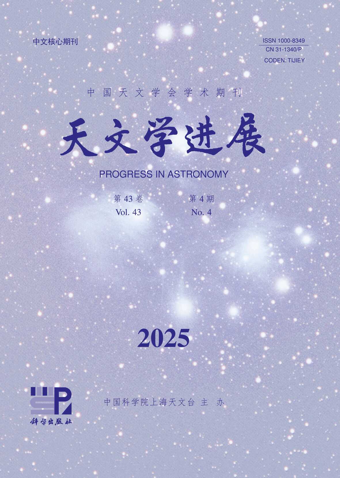 《天文学进展》是中国科学院上海天文台和中国天文学会主办的天文学类核心期刊。1983 年 6 月创刊,季刊,主要刊登反映国内外天文学各分支学科最新研究进展的评述性文章,也发表研究论文、学科前沿介绍等稿件.....