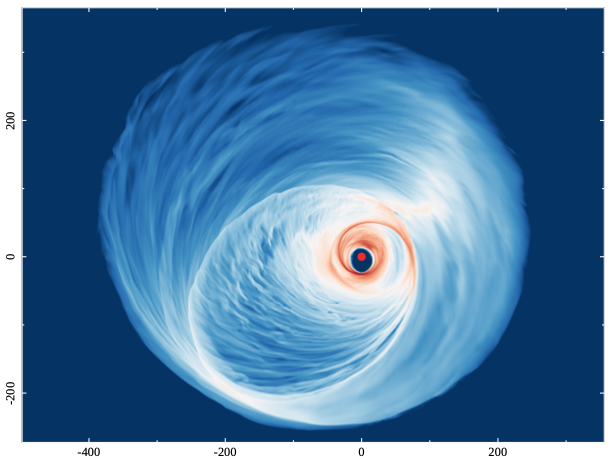 图2. 流体模拟中较差进动导致轨道碰撞,引发AGN吸积状态的变化